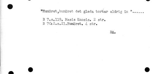 //// "Humöret,humöret det glada torkar aldrig in //// B 7.S.119. Masis Knosis. 2 str. //// B 7C:2.s.21.Humöret. 4 str. //// RA. //// t //// j H ^ ////