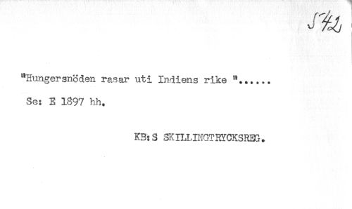 //// "Hungersnöden rasar uti Indiens rike "...... //// Se: E 1897 hh. //// K3:S SKILI.INGTRYCKSREG. ////