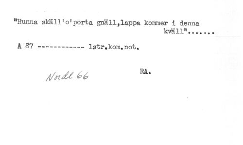 //// "Hunna skäll'o'porta gnäll,lappa kommer 1 denna //// kväll"....... //// A 87 ------- lstr.kom.not. ////
