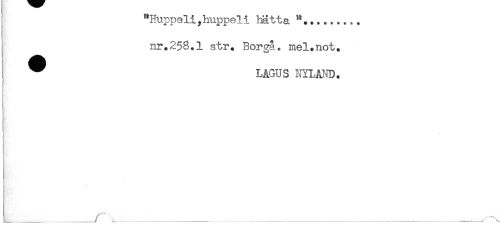 //// "Huppeliyhuppeli hatta "......... //// nr.258.1 str. Borga. mel.not. //// ^ LAGUS NYLAND. //// s //// ! //// - //// ( //// ____ _r___- _______< ////