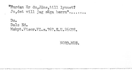 //// "Hurdan är dUyJönsytill lynnet? //// Jo,det vill jag säga herrn"........ //// Ds. //// Dals Ed. //// Mskpt.Vi sor.VI.s.767.E.U.26 078. //// NORD.HUS. ////