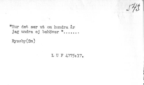 //// "Hur det. ser ut om hundra år //// jag undra ej behöver //// Ryssby(Sm) //// L U F 4775:17. //// ä //// n ////