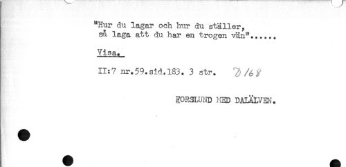//// , "Hur du lagar och hur du ställer, //// så laga att du har en trogen vän"...... //// Visa. //// 11:7 nr.59.sid.183. 3 str. //// EORSLUND MED DALÄLVEN. //// * ////