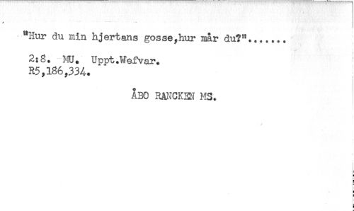 //// ' ..... //// "Hur du min hjertans gosse,hur mår du?"....... //// 2:8. MU. Uppt.Wefvar. //// R5,186,33A. //// ÅBO RANCKEN MS. //// ! //// < //// < //// t ////