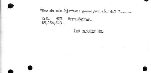 //// "Hur du min hjertans gosse,hur mar du? "...... //// 2:8. MU? Uppt.Wefvar. //// R5,186,343. //// ÅBO RÅNCKEN MS. //// NH' * //// . //// K. //// H ! ^ ^ ////