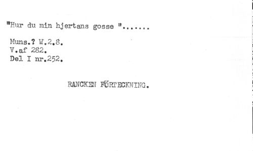 //// c //// "Hur du min hjertans gosse "....... //// Muns.? ¥.2.8. //// V.af 282. //// Del I nr.252. //// RANCKEH FÖRTECKNING. ' //// c ////