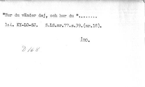 //// "Hur du vänder dej/ och hur du //// 1:4. KY-LO^SJ. S.LS.nr.77.s.39.(nr.l8). //// } //// ABO. //// . ////