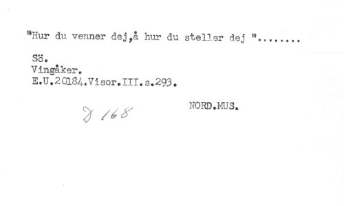 //// "Hur du venner dej,å hur du steller dej //// SÖ. //// Vingåker. //// E.U.20l8A.Visor.III.s.293. ////