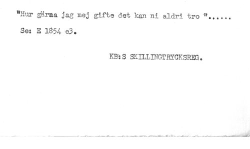 //// "Hur gäraa jag mej gifte det kan ni aldri tro "..____ //// Se: E 1654 e3. //// KB:S SK ILLDIGT RYCKSREG. //// ...........-......A-^'............... ...-------—- --*- -------^------- - - -- -----.---- - ////