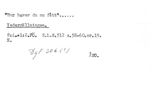 //// "Hur haver du nu fått"...... //// Vedergällningen. //// 8:4*+l:2.B\). S.L.S.512 s.5S-60.nr.l5. //// N. //// / ABO. ////