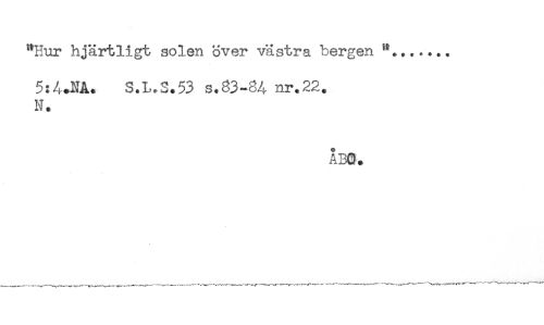 //// "Hur hjärtligt solen över västra bergen //// 5:A.NA. S.L.S.53 s.83-84 nr.22. //// N. //// ABO. ////