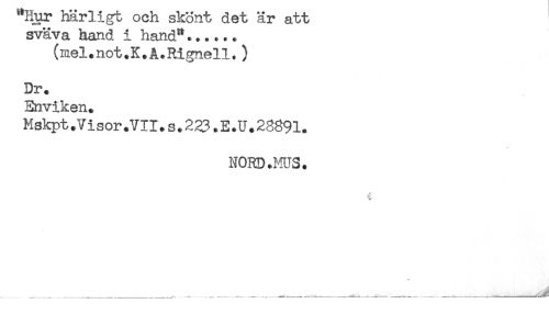 //// uuii s^oau a.eu ar av& //// sväva hand i hand"...... //// (mel.not.K.A.Rignell.) //// Dr. //// Enviken* //// Mskpt.Visor.VII.s.223.E.U.28891. //// NORD.MUS. //// v //// __ ^ _ _ _______ . ////