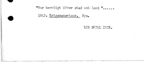 //// } "Hur herr ligt öfver stad och land //// ' ^^ 1843. Krigsmansvisor. Nya. //// Kt //// LUB SKILL UNIK. ////