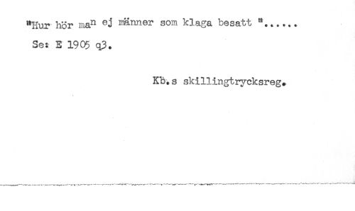 //// "Hur hör ma^ ej imnner som klaga besatt //// Se: E 190$ q3. //// Kb.s skillingtryeksreg. //// * //// —-----^^f-—-----' " --- ////