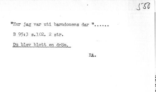 //// "Hur jag var uti barndomens dar //// B 95:3 S.1C2. 2 str. //// Du blev blott en drom. //// Rå. //// ! //// H ////