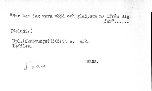 //// "Hur kan jag vara nöjd och glad,som nu ifrån dig //// 2LT* ****** //// (Melodi.) //// Upl.(Skuttunge?)303:75 a. s.2. //// Leffler. ////