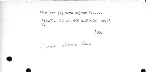 //// "Eur kan jag vara nöj der "...... //// 5:A.,GU. S.L.S. 508 s.239-241 nr.86 //// N. //// ÅBO. ////