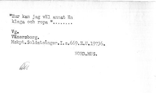 //// t //// "Hur kan jag väl annat än //// klaga och ropa . //// v //// Yg. //// Vänersborg. //// Mskpt.Soldat sånger.I.s.669.3.U.19736. //// NORD.MUS. ////