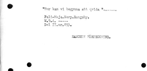 //// "Hur kan vi begynna att qvida //// ' //// Pa1i-Maj a.N erp.Rangsby. //// M.9.A. ----- //// Del II.nr.893. //// RANCKEN ^RTECKNING. ////