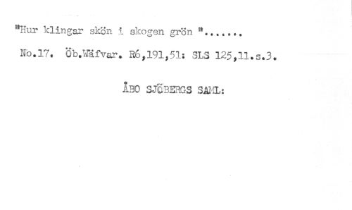 //// - //// "Hur klingar skön i skogen grön "....... //// No.17. Öb.HSfvar. R6,191,51: SL3 125,11.s.3. //// ÅBO SJÖBERGS SAI3L: ////