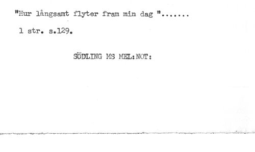 //// "Hur långsamt flyter fram min dag //// !- //// 1 str. s.129. //// SODLING K3 HEL:NOT: ////