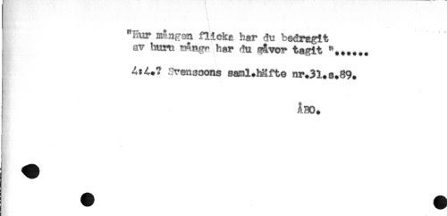 //// i. ".," /' . //// "Hur mången flieke har bedregit //// av !wrn t^Rgr har du 3&vor taf?it ...... //// 4^4-.? "ren3oons sanl.hgfte nr.31.a.89. //// ÅBO. ////