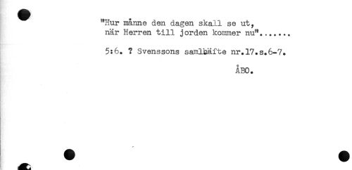 //// ^^ "Hur månne den dagen skall se ut, //// när Herren till jorden kommer nu"....... //// 5:6. ? Svenssons samlhäfte nr.l7.s.6-7. //// ÅN). //// * ////