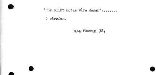 //// "Hur olikt mötas wåra dagar"........ //// 5 strofer. //// DALA FORNSAL ////