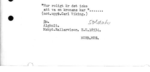 //// "Hur roligt är det icke //// att va en kronans kar "....... //// (not.uppl?.Carl Viking.) //// ^ 3m- //// Alghult. //// Mskpt.Rallarvisor. E.U.1853A. //// NORD.MUS. ////