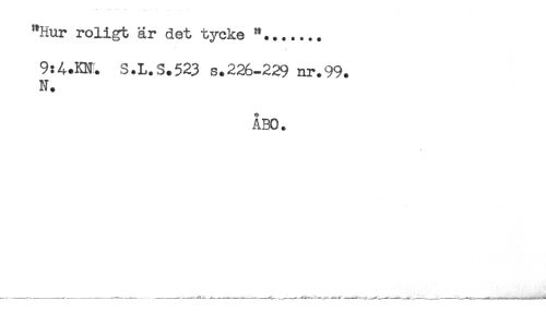 //// "Hur roligt är det tycke "....... //// 9:A.KN. S.L.S.523 s.226-229 nr.99. //// N. //// ÅBO. ////