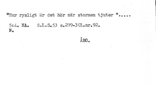 //// "Hur rysligt är det hör när stormen tjuter "..... //// 5:4. NA. S.L.S.53 s.299-3Ol.nr.92. //// N. //// ÅBO. ////