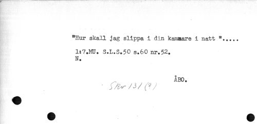 //// - //// .... //// "Hur skall jag slippa i din kaiaaare i natt //// 1:7.MU. S.L.S.50 s.60 nr.52. //// N. //// . //// ÅBO. //// ' AV ' ////