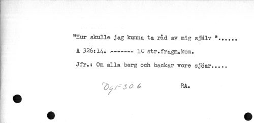 //// "Hur skulle jag kunna ta råd av mig själv "...... //// å 326:14.-------10 str.fragm.kom. //// Jfr.: Om alla berg och backar vore sjöar..... //// RA. //// T^nF i) ////