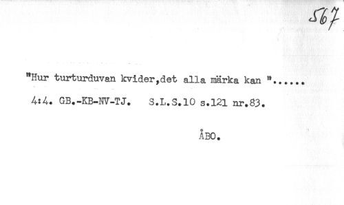 //// "Hur turturduvan kvider,det alla märka kan "...... //// 4:4. GB.-KB-NV-TJ. S.L.S.10 s.121 nr.83. //// ÅBO. ////