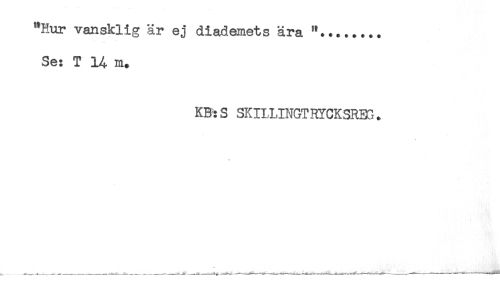 //// "Hur vansklig är ej diademets ära "........ //// Se: T 14 m. //// KB:S SKILLINGTHYCKSRBG. ////