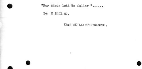 //// ^ "Hur ödets lott än faller "...... //// Se: E 1851.g3. //// t&e* M //// K* //// KB:S SKILLINGTRYCKSREG. //// f //// t ////