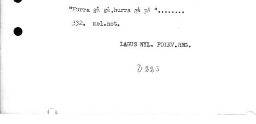 //// "Hurra gå gå,hurra gå på //// 332. mel.not. //// j //// LAGUS NYL. FOLKV.REG. //// ____ _______ ___- ////