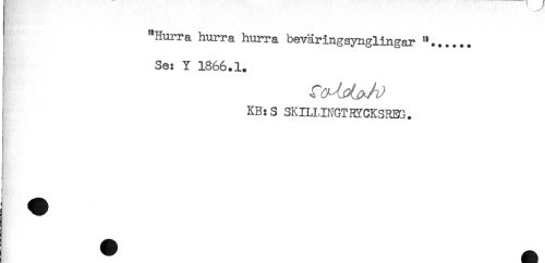 //// "Hurra hurra hurra beväringsynglingar '*...... //// Se: Y 1866.1. //// KB:S SKILLDJGTHYCKSRm. //// T //// ) //// t ////