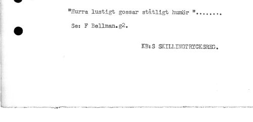 //// "Hurra lustigt gossar ståtligt humör //// ^ Se: F Bellman.g2. //// KB:S SKILLINGTRYCKSREG. //// t ////