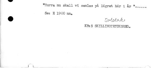 //// "Hurra nu skall vi samlas på lägret här i år "...... //// Se: E 1900 nn. //// KB": S SK ILLINGT RYCKSREG. //// --r.._______.__^___^ ////