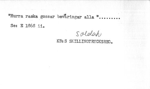 //// "Hurra raska gossar hevaringår alla ....... //// Se: E 1868 ii. //// KB:S SKILLINGTRYCKSREG. //// \ ////