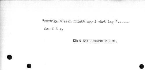 //// "Hurtiga bussar friskt upp i vårt lag //// Se: U 8 a. //// KB:S SKILLINGTRYCKSREG. ////