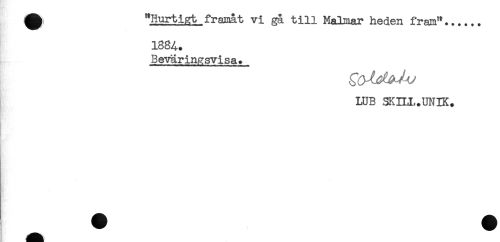 //// ^ "Hurtigt framåt vi gå till Malmar heden fram"...... //// 188A. //// Bevarin^svisa. //// LUB 3KIH,.mJIK. //// K''' ////