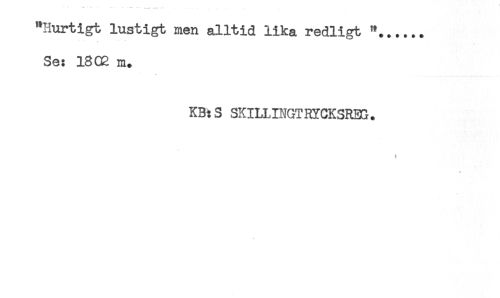 //// "Hurtigt lustigt men alltid lika redligt "...... //// Se: 18CB m. //// KB:S SKILLINGTRYCKSRBG. //// # //// < ////