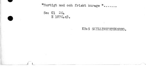 //// "Hurtigt mod och friskt kurage "....... //// Se: Cl 20. //// ^ E 1870. c3. //// ! ' //// I //// KB:S SKILLINGTRYCKSREC. //// < //// k.....:......f......L..........-....-.....^ ////