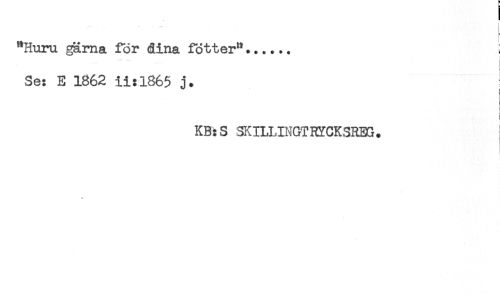 //// . - ;...... //// "Huru gärna för dina fötter"...... //// Se: E 1862 ii:1865 j. //// i //// KB:S SKILLINGTRYCKSREG. ////