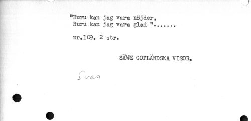 //// f.. //// "Huru kan jag vara nöj der, //// Huru kan jag vara glad //// nr.109. 2 str. //// SAWE GOTLÄNDSKA VISOR. ////