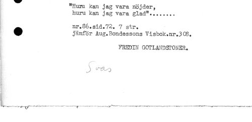 //// iinAiA jstg v^ra nojaer, //// huru kan j ag vara glad"........ //// ! ^ nr.86.sid.72. 7 str. //// W jämför Åug.Bondessons Visbok.nr.3 C6. //// FREDIN GCTLMDSTONER. //// ! ////