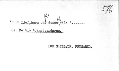 //// "Huru ljuf,huru so^ dennay^ila //// Se: De tio tjänsteandarne. //// t //// c //// LUB SKILL^TR. FROSÅREG. //// i //// 'E //// < ////