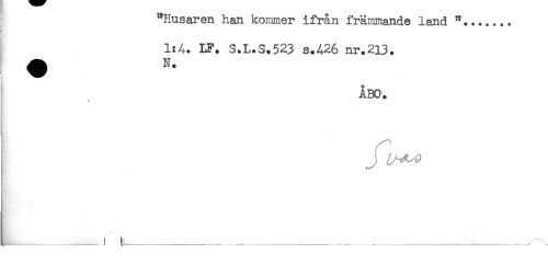 //// "Husaren han kommer ifrån främmande land ...... //// 1:4. IF. S.L.S.523 s.426 nr.213. //// ABO. //// * ////